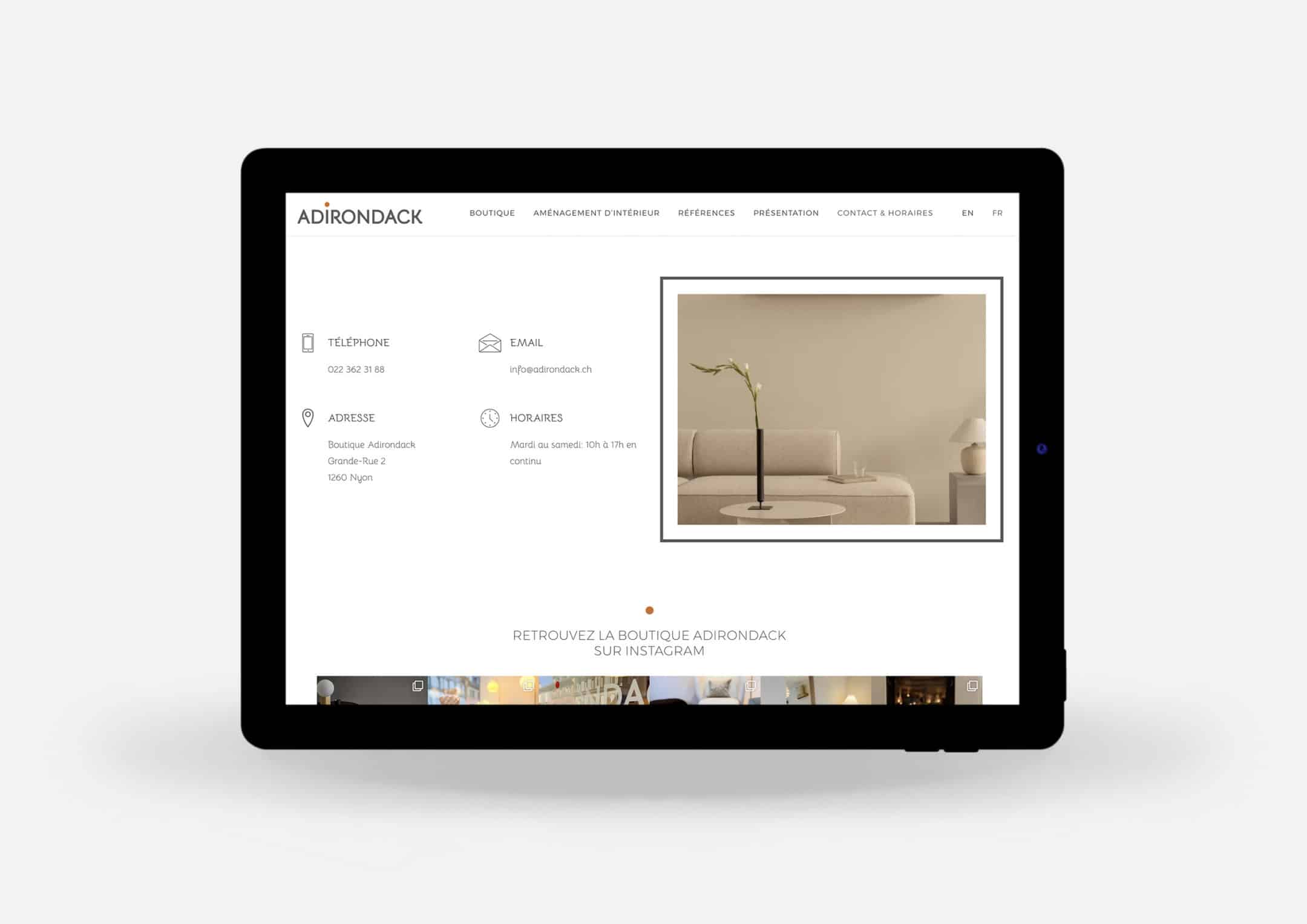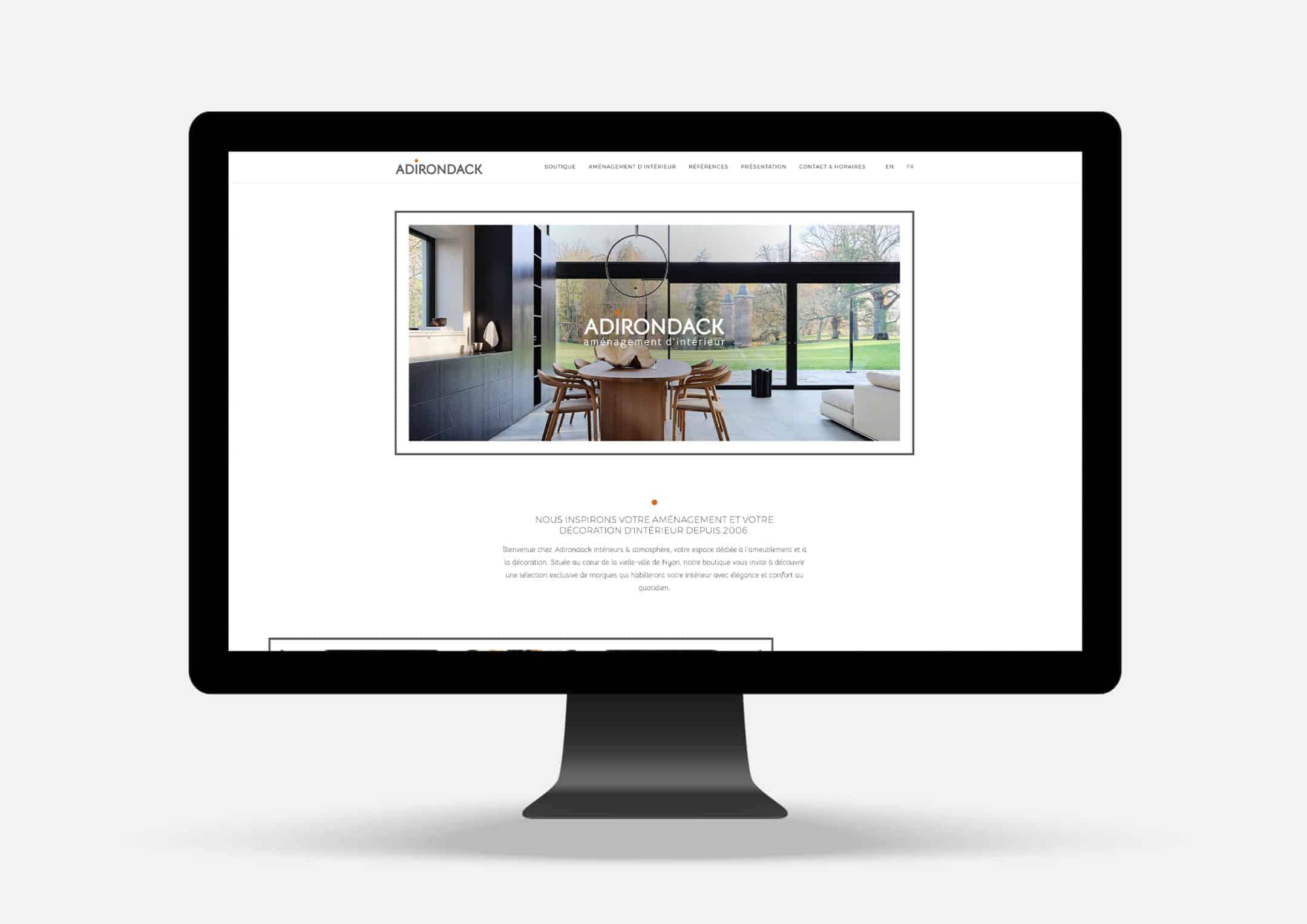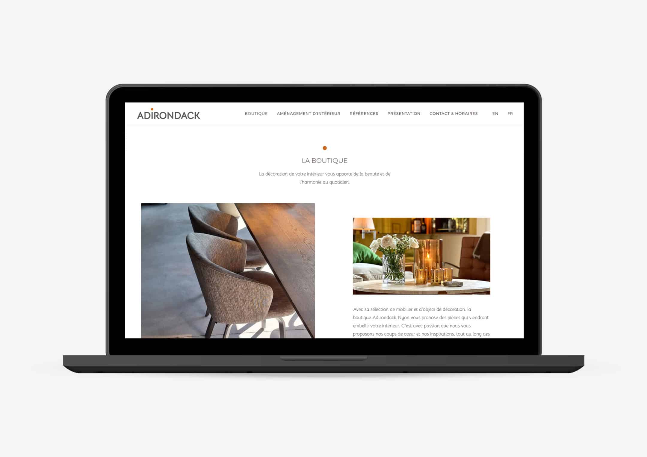 Création du site internet pour Adirondack, boutique d’ameublement et de décoration à Nyon.