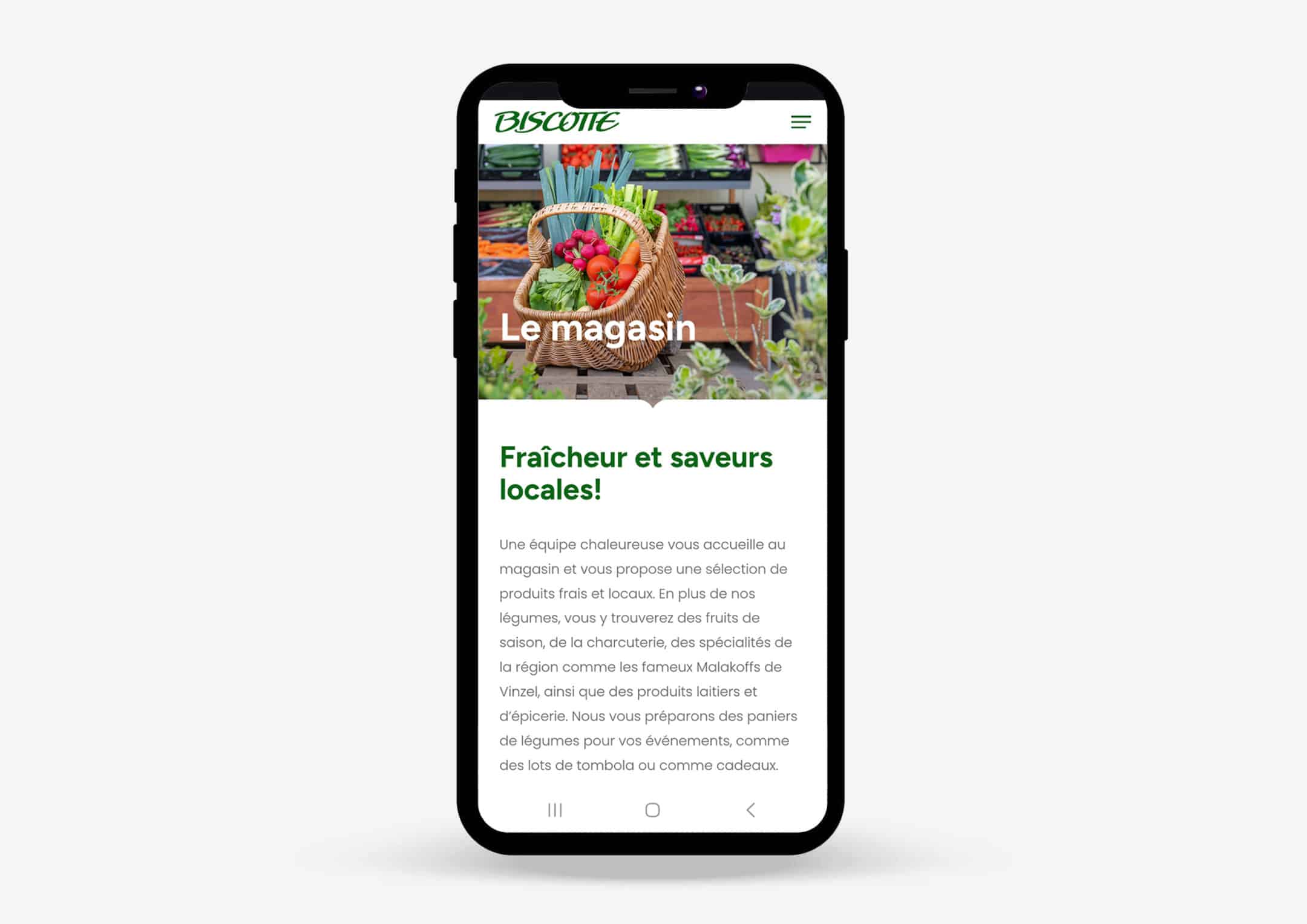Conception du site web pour Biscotte fruits et légumes S.A, entreprise maraîchère à Vinzel