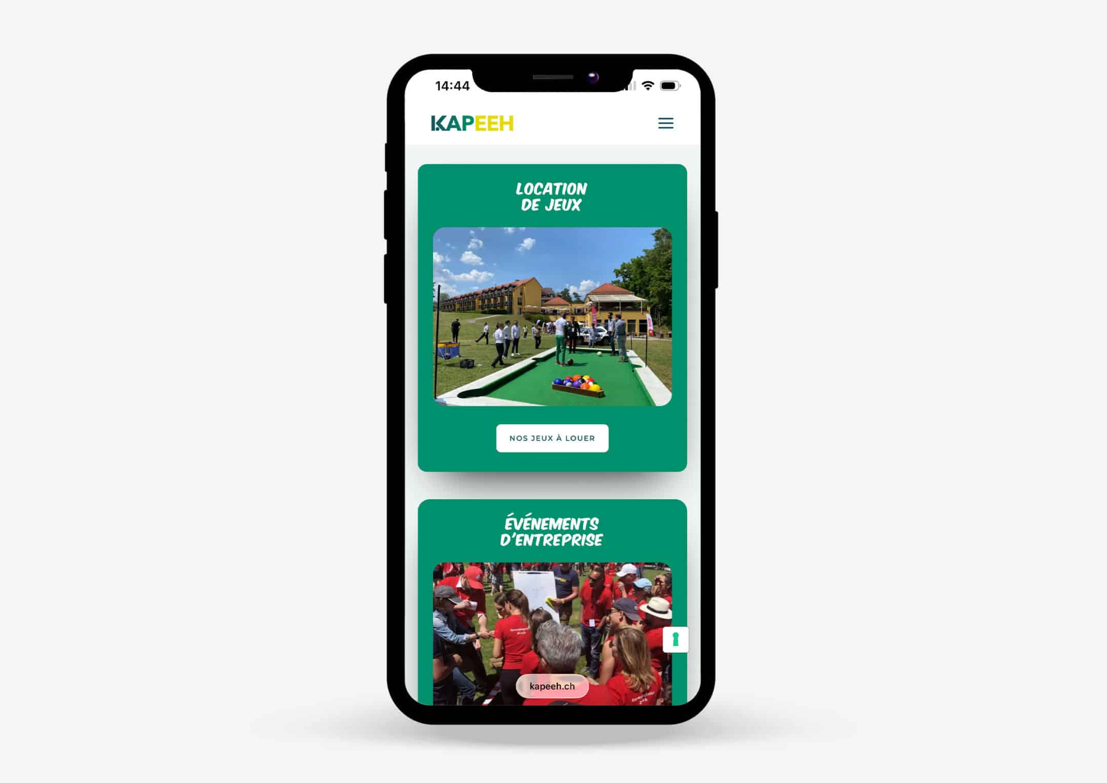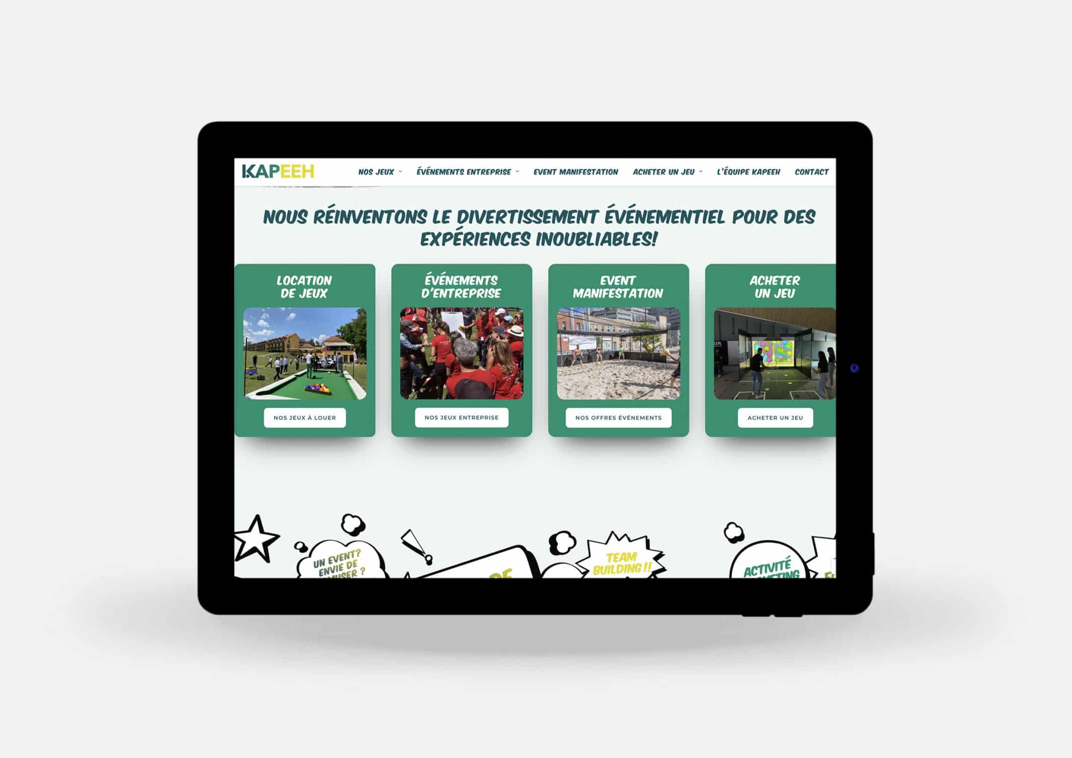 Création du site internet pour Kapeeh, entreprise spécialisée dans l’organisation d’événements et la location de jeux.