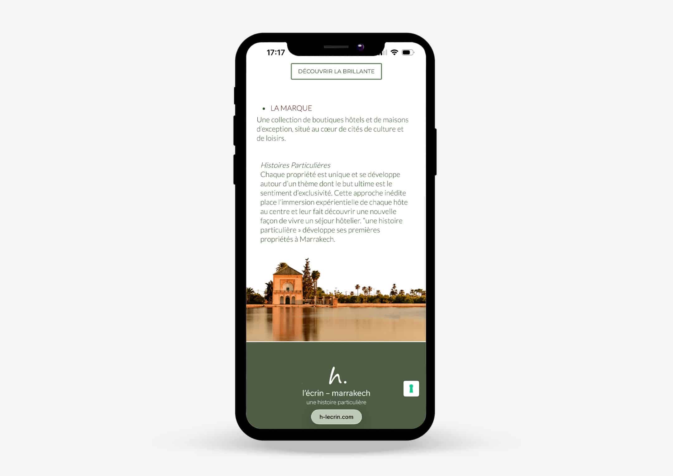 Création du site internet pour L’Écrin – Marrakech, un riad au coeur de la Médina.