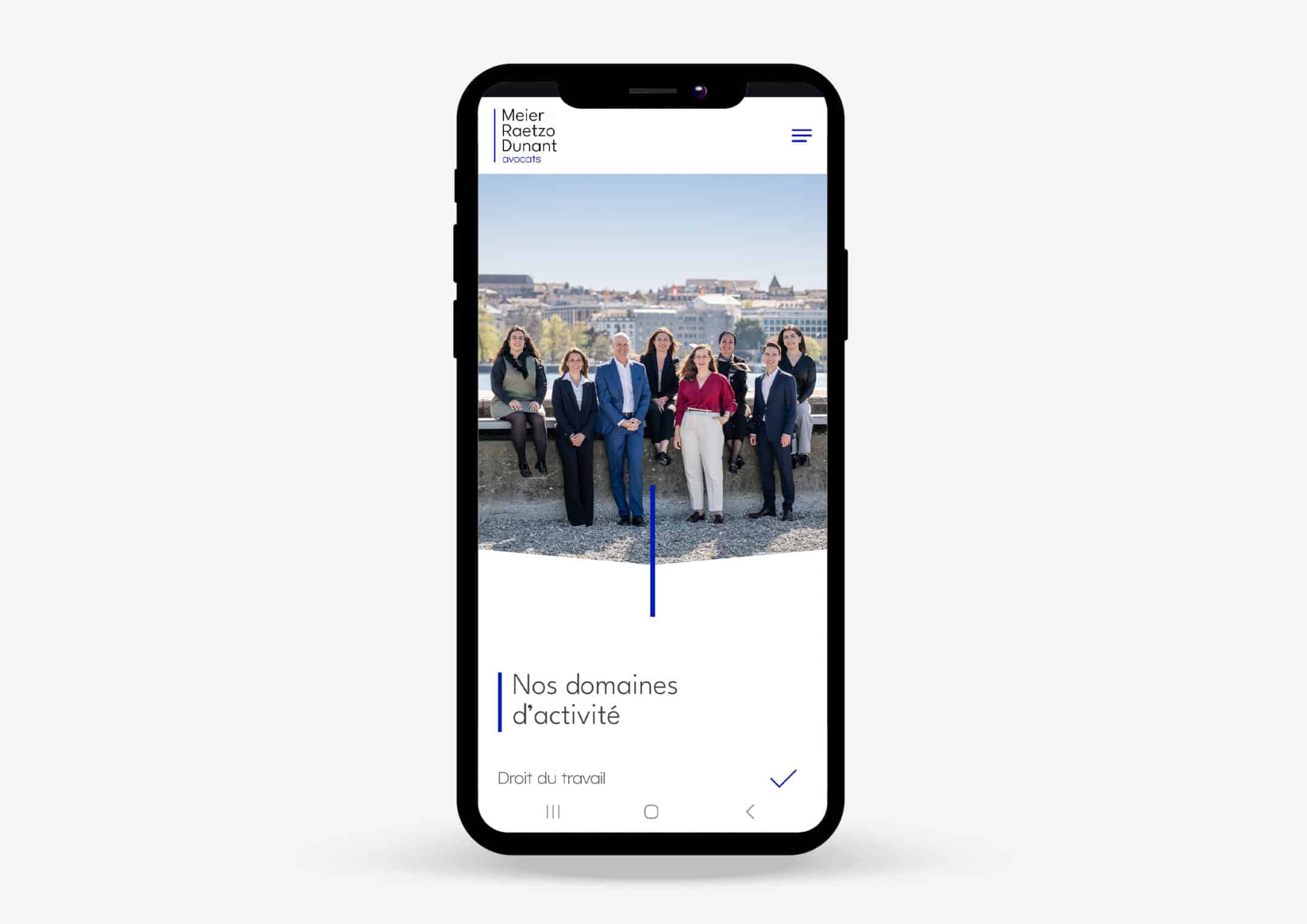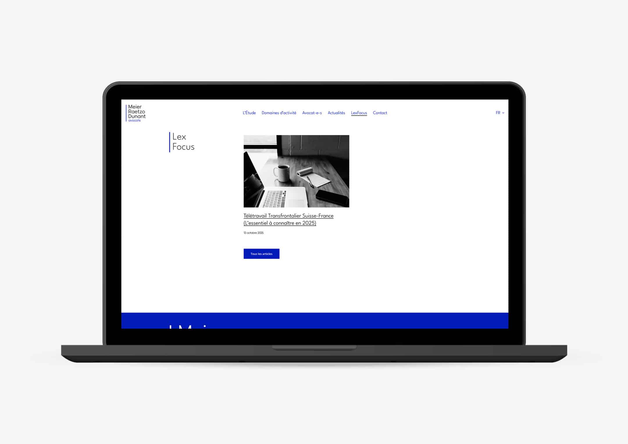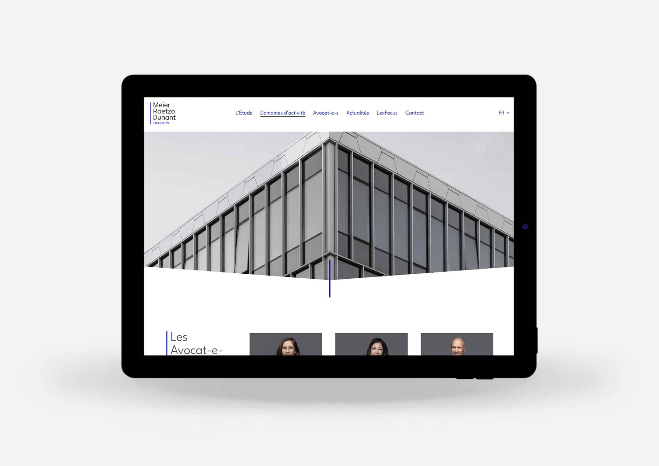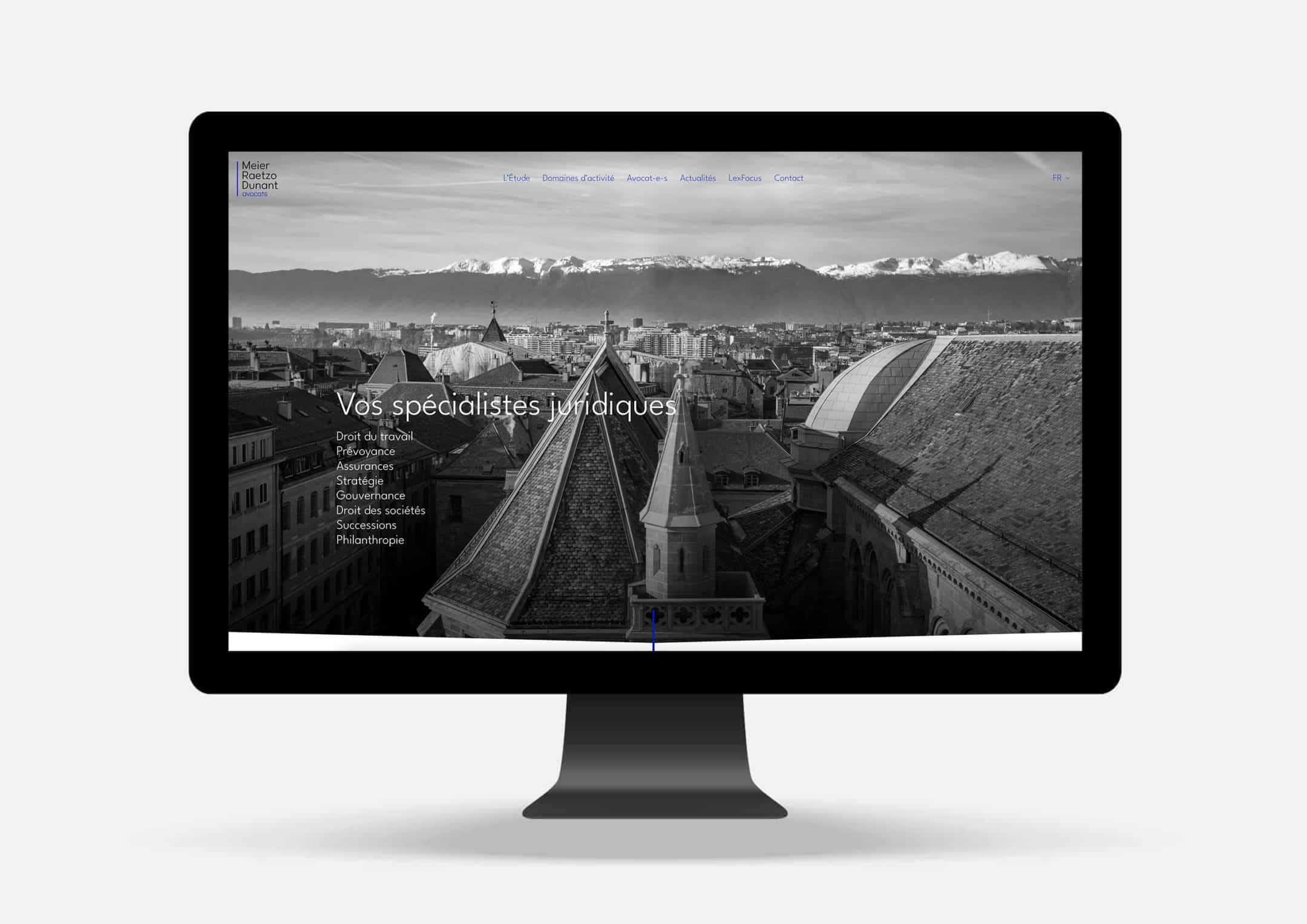 Création du logo, du site internet et des cartes de visite pour Meier Raetzo Dunant, étude d’avocats à Genève.